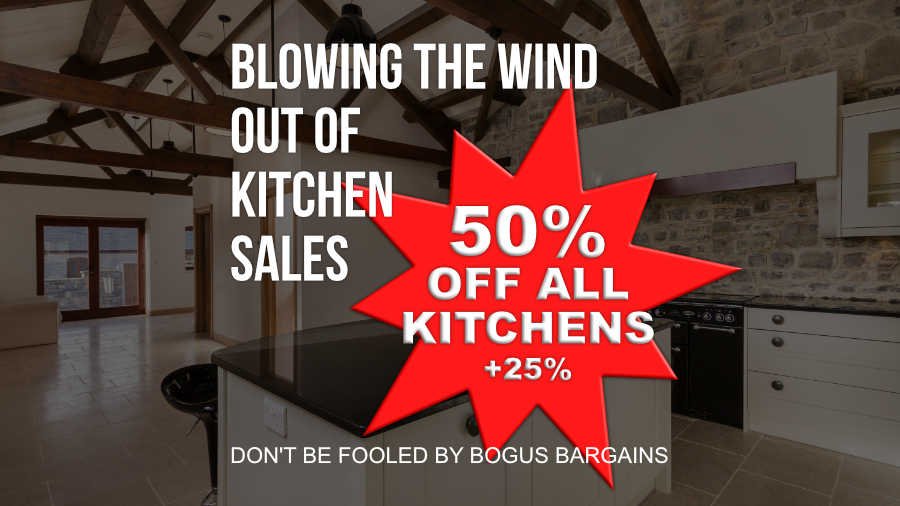 The seductive headlines are all over the place. 40% Off Selected Cabinets or 30% Off the whole range. It all sounds great but the reality is very different. Ask yourself how often you buy a kitchen. The chances are that it's not very often. So how do you know the price you pay in the sale is significantly lower than the non sale price?